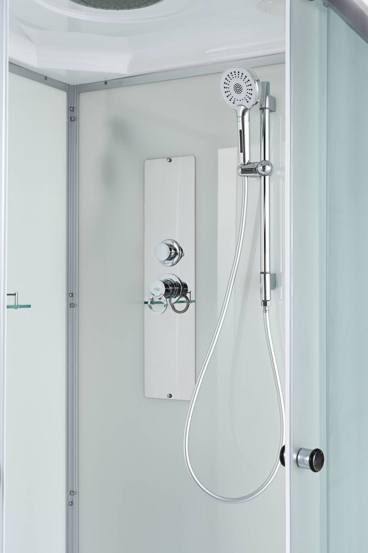 Стильная душевая кабина AvaCan D3080  сочетает в себе высокую функциональность, практичность и надежность. При изготовлении применяется безопасное закаленное стекло толщиной 4 мм (матовое), надежно фиксируемое алюминиевым профилем. Сборка без силикона (увеличивает срок службы), внутренняя сборка (облегчает установку и ревизию, позволяет установить душевую кабину в ограниченном пространстве),смеситель резьбовой (без хомутов), съемный экран поддона (позволяет осуществлять ревизию сифона), цвет профиля матовый хром. Двойные металлические ролики дверей (увеличивают срок службы).В комплекте : душевая штанга, полочка, тропический (верхний) душ, арома-лейка с витамином С (картридж съемный).