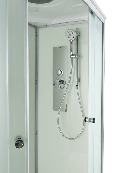 Стильная душевая кабина AvaCan D 5012L  сочетает в себе высокую функциональность, практичность и надежность. При изготовлении применяется безопасное закаленное стекло толщиной 4 мм (матовое), надежно фиксируемое алюминиевым профилем. Сборка без силикона (увеличивает срок службы), внутренняя сборка (облегчает установку и ревизию, позволяет установить душевую кабину в ограниченном пространстве),смеситель резьбовой (без хомутов), съемный экран поддона (позволяет осуществлять ревизию сифона), цвет профиля матовый хром. Двойные металлические ролики дверей (увеличивают срок службы).В комплекте : душевая штанга, полочка, тропический (верхний) душ, арома-лейка с витамином С (картридж съемный).