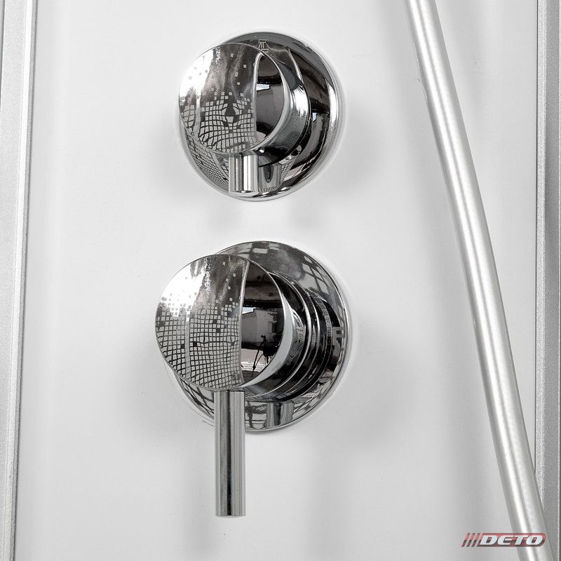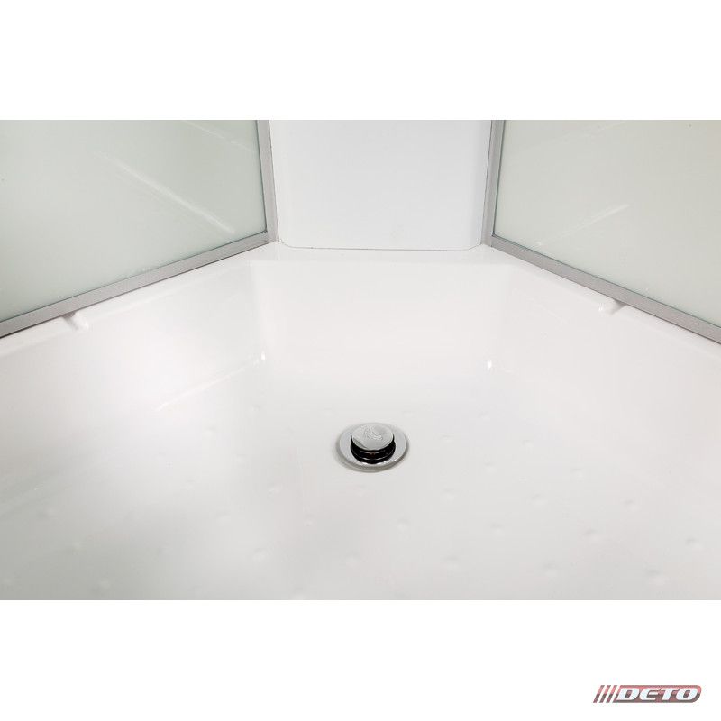 Душевая кабина Deto L720 R N прослужит Вам долгие годы, даря удовольствие от использования. Данная модель оснащена ручным душем с удобным 150-сантиметровым шлангом и лейкой, которую можно закрепить на специальном держателе, если Вы хотите освободить руки. Имеется также верхний душ, лейка которого вмонтирована в крышу кабины. Также в крыше сделаны отверстия для вентиляции, прикрытые белыми дефлекторами.Душевое ограждение изготовлено из закалённого стеклянного полотна толщиной 4 мм. При обычном бытовом использовании оно безопасно, так как его сложно разбить. Но и даже в таком случае оно образует осколки без острых граней.