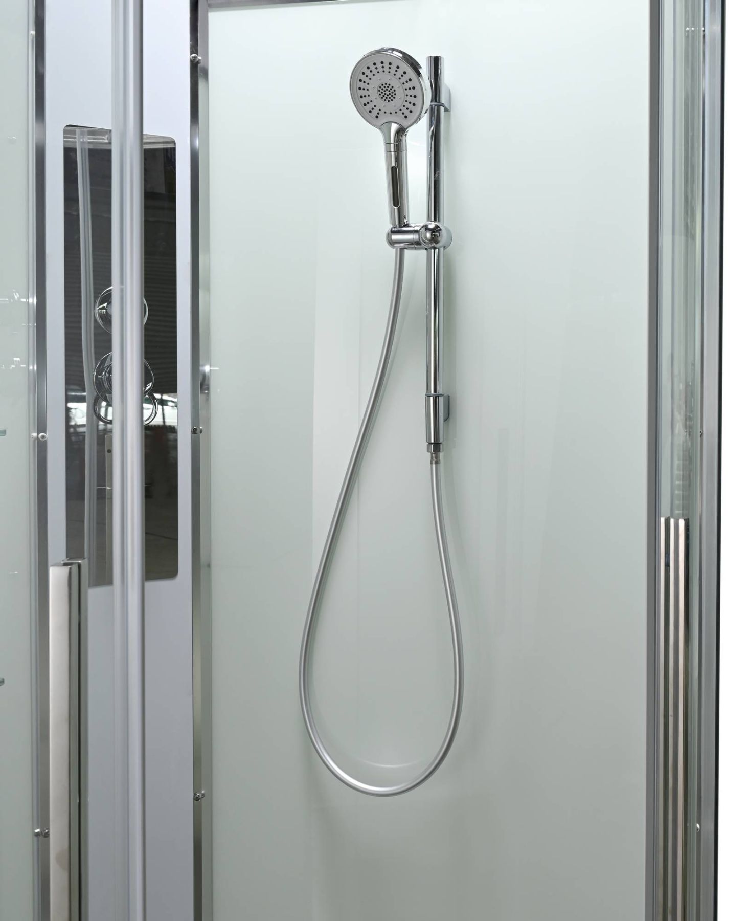 Стильная душевая кабина AvaCan EM2090T сочетает в себе высокую функциональность, практичность и надежность. При изготовлении применяется безопасное закаленное стекло толщиной 5 мм (прозрачное), надежно фиксируемое алюминиевым профилем. Сборка без силикона (увеличивает срок службы), внутренняя сборка(облегчает установку и ревизию; позволяет установить в ограниченном пространстве), смеситель резьбовой (без хомутов). Съемный экран поддона (позволяет осуществлять ревизию сифона). Цвет профиля  хром. Двойные металлические ролики дверей (увеличивают срок службы).В комплекте : душевая штанга, две полочки , тропический (верхний) душ, арома-лейка с витамином С (картридж съемный),полимерная вставка в поддон(имитация дерева),сифон, ручки дверей из нержавейки , двойные ролики .