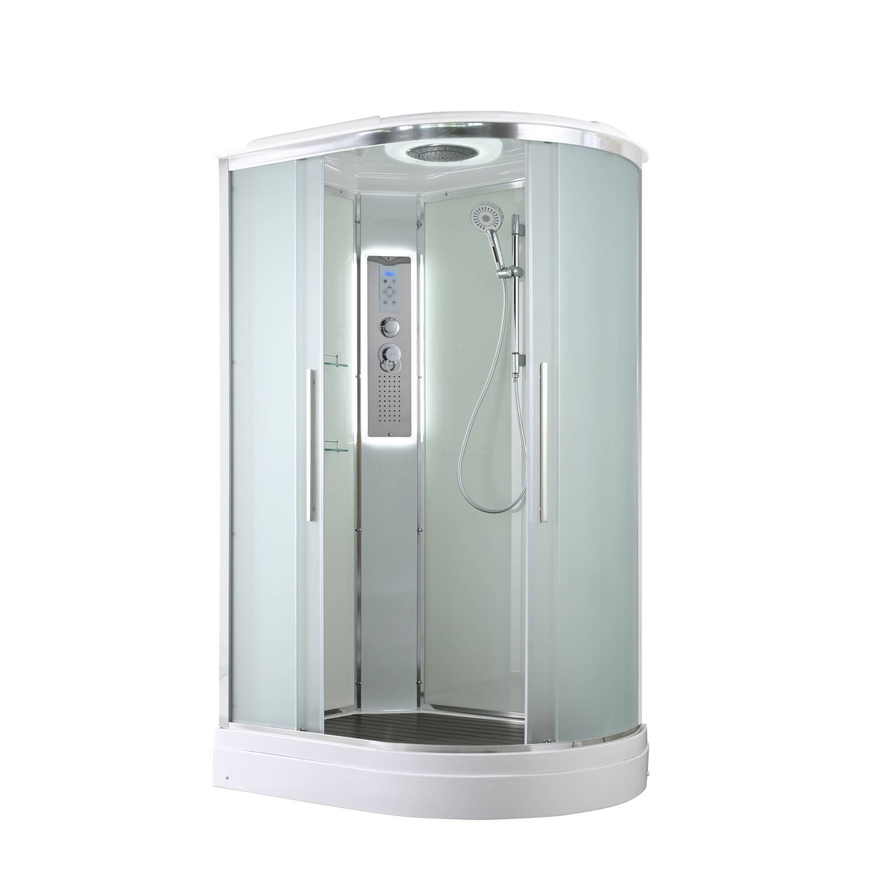 Стильная душевая кабина AvaCan EM2811LLED сочетает в себе высокую функциональность, практичность и надежность. При изготовлении применяется безопасное закаленное стекло толщиной 5 мм (матовое), надежно фиксируемое алюминиевым профилем. Сборка без силикона (увеличивает срок службы), внутренняя сборка(облегчает установку и ревизию; позволяет установить в ограниченном пространстве), смеситель резьбовой (без хомутов). Съемный экран поддона (позволяет осуществлять ревизию сифона). Цвет профиля  хром. Двойные металлические ролики дверей (увеличивают срок службы).В комплекте : душевая штанга, две полочки , тропический (верхний) душ, арома-лейка с витамином С (картридж съемный),полимерная вставка в поддон(имитация дерева),сифон, ручки дверей из нержавейки , двойные ролики ,пульт сенсорный(Блютуз ,LED подсветка ,радио ,вытяжка),гидромассаж спины.