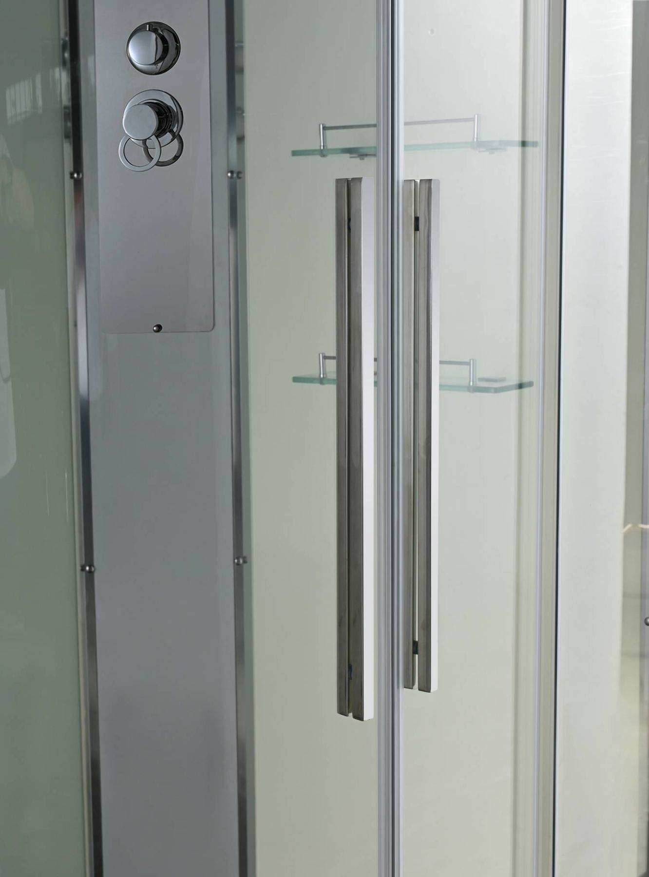 Стильная душевая кабина AvaCan EM2811RT сочетает в себе высокую функциональность, практичность и надежность. При изготовлении применяется безопасное закаленное стекло толщиной 5 мм (прозрачное), надежно фиксируемое алюминиевым профилем. Сборка без силикона (увеличивает срок службы), внутренняя сборка(облегчает установку и ревизию; позволяет установить в ограниченном пространстве), смеситель резьбовой (без хомутов). Съемный экран поддона (позволяет осуществлять ревизию сифона). Цвет профиля хром. Двойные металлические ролики дверей (увеличивают срок службы).В комплекте : душевая штанга, две полочки , тропический (верхний) душ, арома-лейка с витамином С (картридж съемный),полимерная вставка в поддон(имитация дерева),сифон, ручки дверей из нержавейки , двойные ролики .
