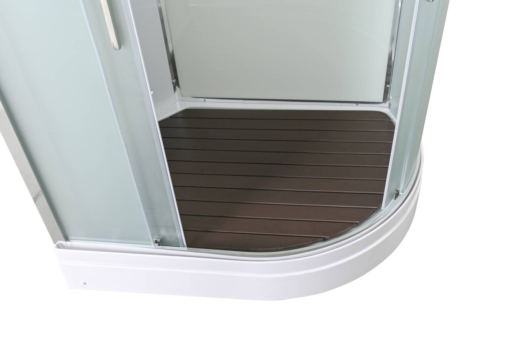 Стильная душевая кабина AvaCan EM2812L сочетает в себе высокую функциональность, практичность и надежность. При изготовлении применяется безопасное закаленное стекло толщиной 5 мм (матовое), надежно фиксируемое алюминиевым профилем. Сборка без силикона (увеличивает срок службы), внутренняя сборка(облегчает установку и ревизию; позволяет установить в ограниченном пространстве), смеситель резьбовой (без хомутов). Съемный экран поддона (позволяет осуществлять ревизию сифона). Цвет профиля  хром. Двойные металлические ролики дверей (увеличивают срок службы).В комплекте : душевая штанга, две полочки , тропический (верхний) душ, арома-лейка с витамином С (картридж съемный),полимерная вставка в поддон(имитация дерева),сифон, ручки дверей из нержавейки , двойные ролики .
