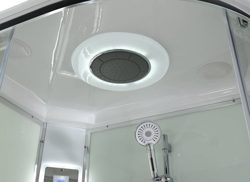 Стильная душевая кабина AvaCan EM2812LLEDT сочетает в себе высокую функциональность, практичность и надежность. При изготовлении применяется безопасное закаленное стекло толщиной 5 мм (прозрачное), надежно фиксируемое алюминиевым профилем. Сборка без силикона (увеличивает срок службы), внутренняя сборка(облегчает установку и ревизию; позволяет установить в ограниченном пространстве), смеситель резьбовой (без хомутов). Съемный экран поддона (позволяет осуществлять ревизию сифона). Цвет профиля  хром. Двойные металлические ролики дверей (увеличивают срок службы).В комплекте : душевая штанга, две полочки , тропический (верхний) душ, арома-лейка с витамином С (картридж съемный),полимерная вставка в поддон(имитация дерева),сифон, ручки дверей из нержавейки , двойные ролики ,пульт сенсорный(Блютуз ,LED подсветка ,радио ,вытяжка),гидромассаж спины.