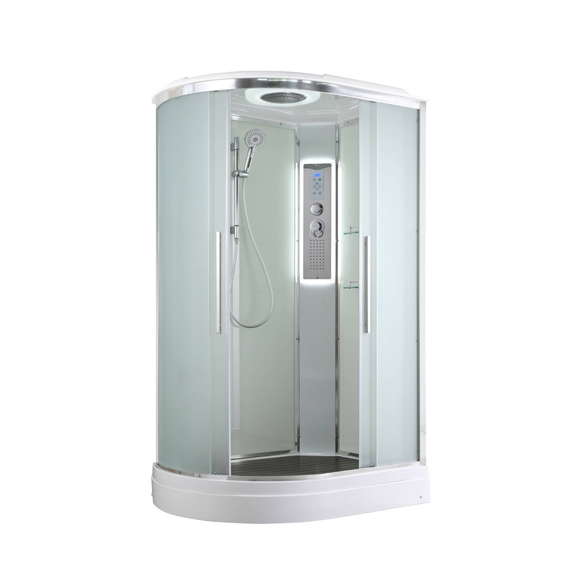 Стильная душевая кабина AvaCan EM2812RLED сочетает в себе высокую функциональность, практичность и надежность. При изготовлении применяется безопасное закаленное стекло толщиной 5 мм (матовое), надежно фиксируемое алюминиевым профилем. Сборка без силикона (увеличивает срок службы), внутренняя сборка(облегчает установку и ревизию; позволяет установить в ограниченном пространстве), смеситель резьбовой (без хомутов). Съемный экран поддона (позволяет осуществлять ревизию сифона). Цвет профиля  хром. Двойные металлические ролики дверей (увеличивают срок службы).В комплекте : душевая штанга, две полочки , тропический (верхний) душ, арома-лейка с витамином С (картридж съемный),полимерная вставка в поддон(имитация дерева),сифон, ручки дверей из нержавейки , двойные ролики ,пульт сенсорный(Блютуз ,LED подсветка ,радио ,вытяжка),гидромассаж спины.