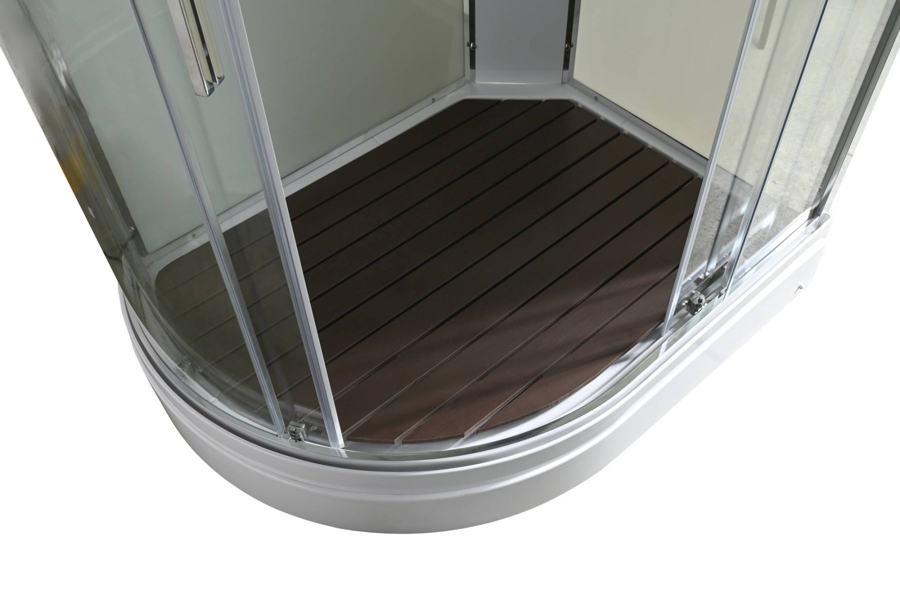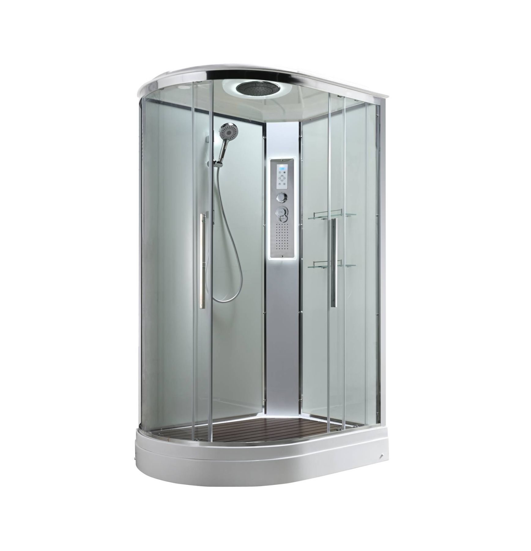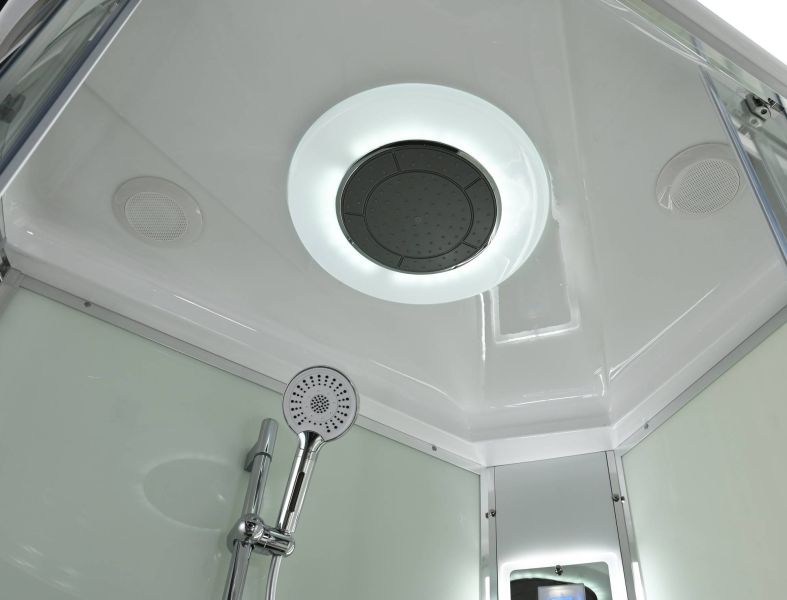 Стильная душевая кабина AvaCan EM2812RLEDT сочетает в себе высокую функциональность, практичность и надежность. При изготовлении применяется безопасное закаленное стекло толщиной 5 мм (прозрачное), надежно фиксируемое алюминиевым профилем. Сборка без силикона (увеличивает срок службы), внутренняя сборка(облегчает установку и ревизию; позволяет установить в ограниченном пространстве), смеситель резьбовой (без хомутов). Съемный экран поддона (позволяет осуществлять ревизию сифона). Цвет профиля  хром. Двойные металлические ролики дверей (увеличивают срок службы).В комплекте : душевая штанга, две полочки , тропический (верхний) душ, арома-лейка с витамином С (картридж съемный),полимерная вставка в поддон(имитация дерева),сифон, ручки дверей из нержавейки , двойные ролики ,пульт сенсорный(Блютуз ,LED подсветка ,радио ,вытяжка),гидромассаж спины.