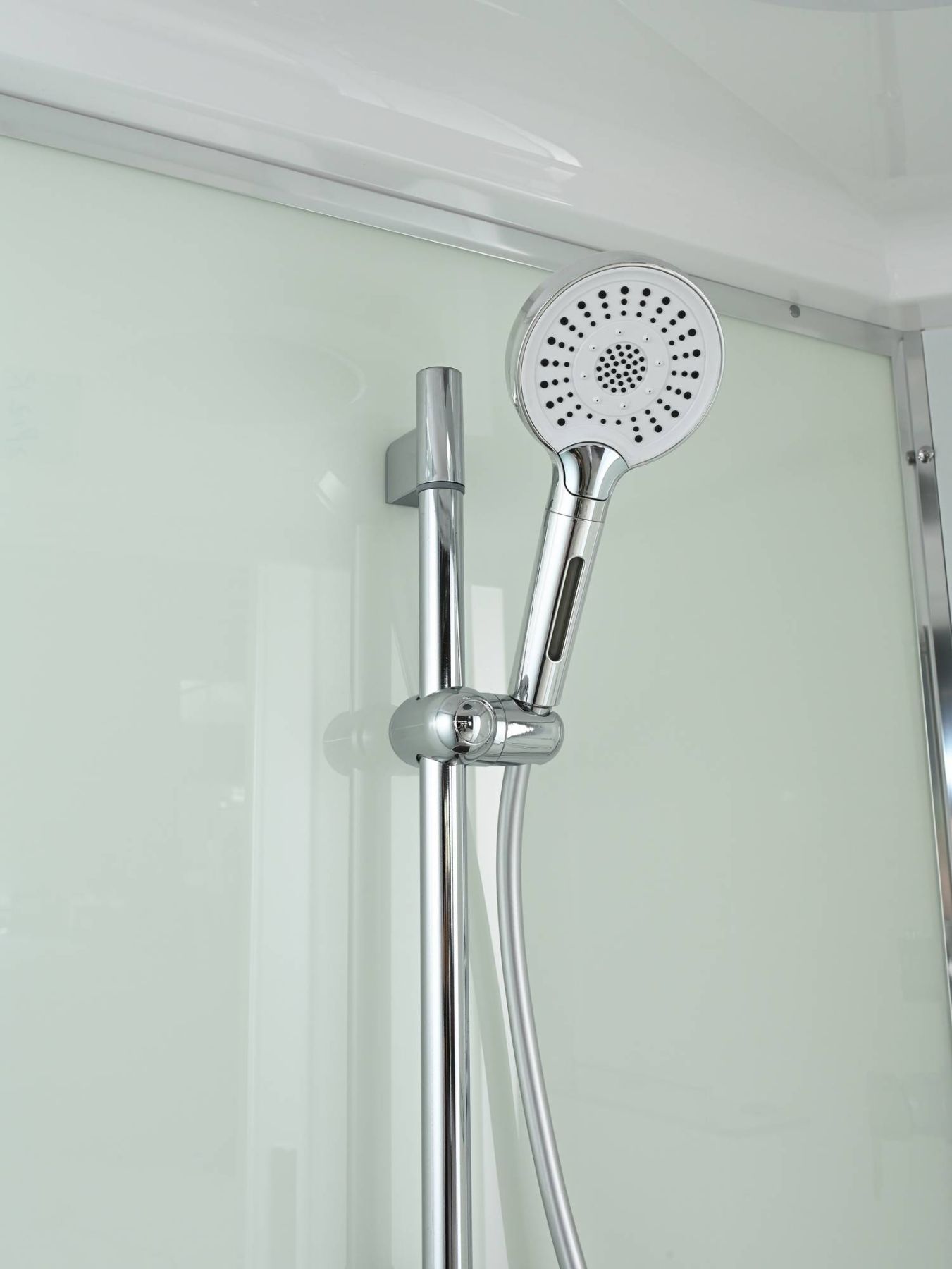 Стильная душевая кабина AvaCan сочетает в себе высокую функциональность, практичность и надежность. При изготовлении применяется безопасное закаленное стекло, надежно фиксируемое алюминиевым профилем. Профиль сделан из алюминия повышенной прочности. Сборка без силикона (увеличивает срок службы, защищает от протечек), внутренняя сборка (облегчает установку и ревизию; позволяет установить в ограниченном пространстве и обойтись без демонтажа других сантехнических приборов), смеситель резьбовой (без хомутов). Съемный экран поддона (позволяет осуществлять подключение и ревизию сифона).Двойные металлические ролики дверей (распределение нагрузки на два ролика, увеличивают срок службы). Душевая штанга(позволяет регулировать по высоте ручную лейку), ручная арома-лейка с витамином С (картридж в комплекте,есть возможность замены или удаления картриджа), полочки(из стекла, с ограничителем), сифон с гидрозатвором.