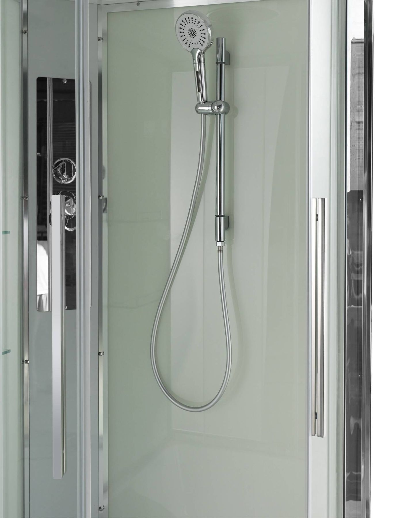 Стильная душевая кабина AvaCan сочетает в себе высокую функциональность, практичность и надежность. При изготовлении применяется безопасное закаленное стекло, надежно фиксируемое алюминиевым профилем. Профиль сделан из алюминия повышенной прочности. Сборка без силикона (увеличивает срок службы, защищает от протечек), внутренняя сборка (облегчает установку и ревизию; позволяет установить в ограниченном пространстве и обойтись без демонтажа других сантехнических приборов), смеситель резьбовой (без хомутов). Съемный экран поддона (позволяет осуществлять подключение и ревизию сифона).Двойные металлические ролики дверей (распределение нагрузки на два ролика, увеличивают срок службы). Душевая штанга(позволяет регулировать по высоте ручную лейку), ручная арома-лейка с витамином С (картридж в комплекте,есть возможность замены или удаления картриджа), полочки(из стекла, с ограничителем), сифон с гидрозатвором.