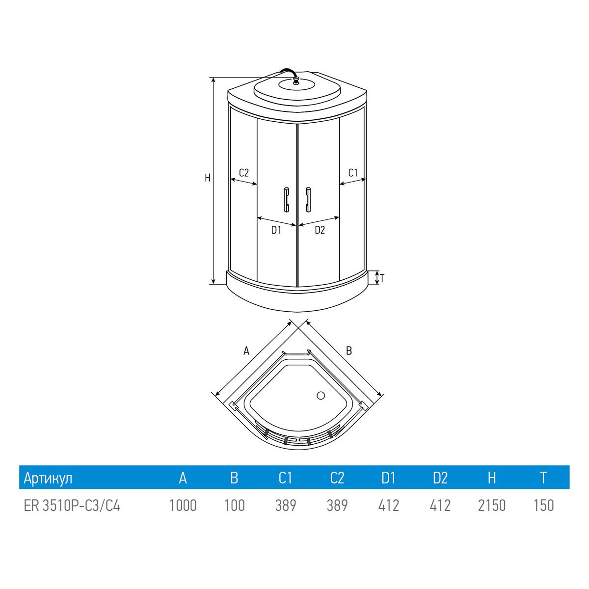 Душевая кабина Erlit Comfort ER3510P-C3-RUS 1000x1000x2150