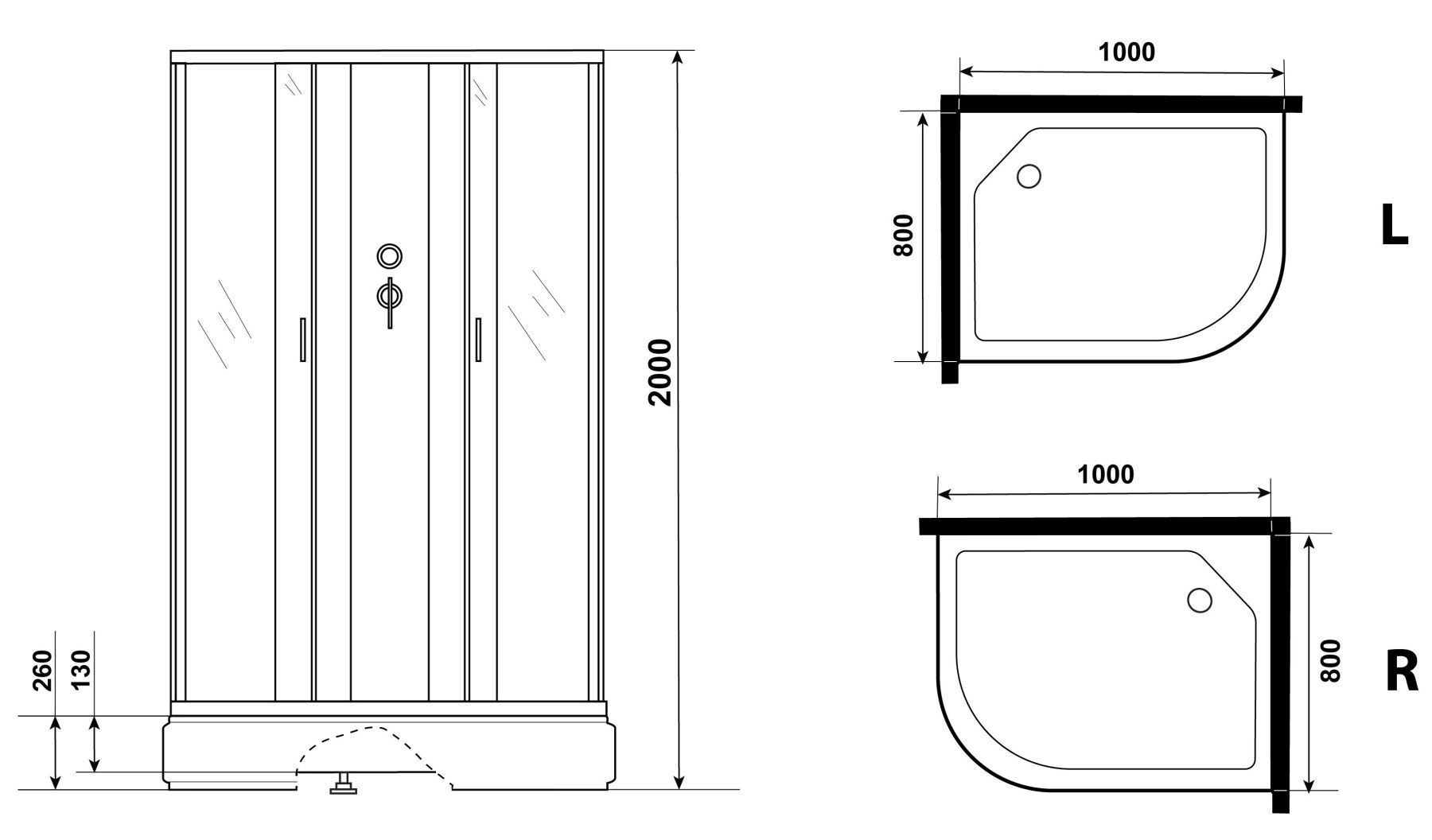 Душевая кабина Niagara NG-33084-14RBKG с гидромассажем 100x80см серебро/матовое