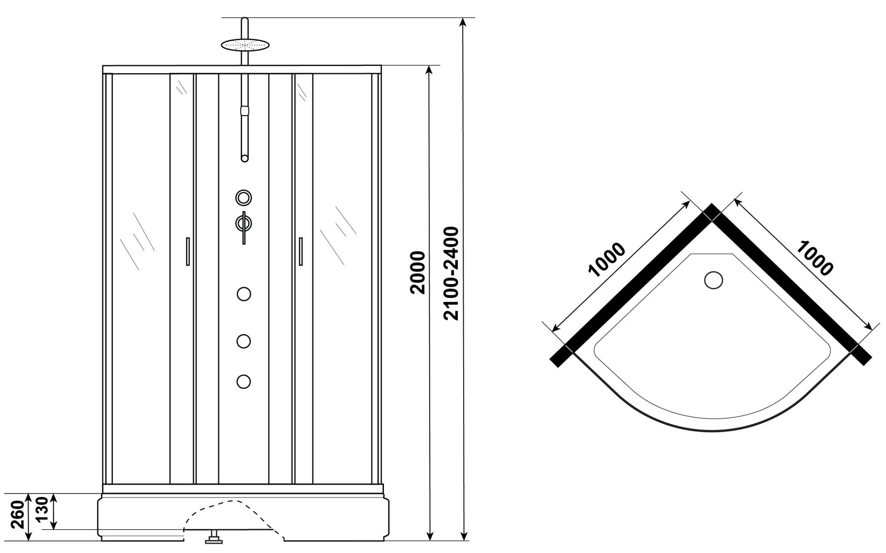 Душевая кабина Niagara NG-3502-14BKTG с гидромассажем 100x100см серебро/тонированное