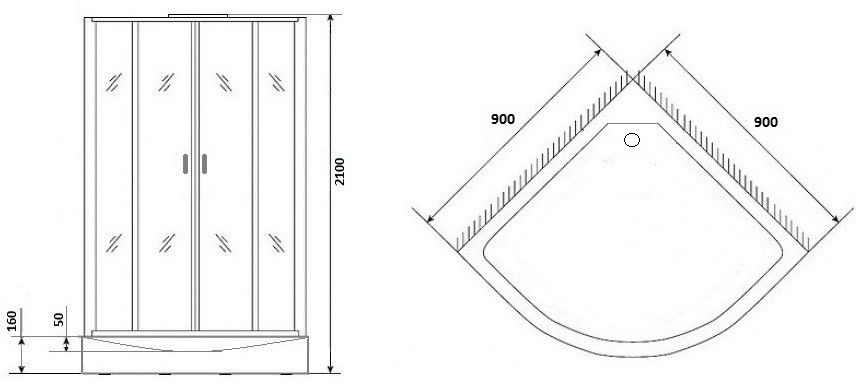 • Форма кабины четверть круга