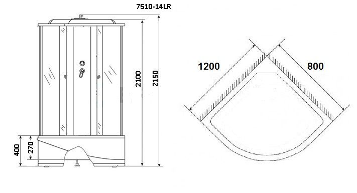 Душевая кабина Niagara NG-7510-14L BLACK 120х80х215
