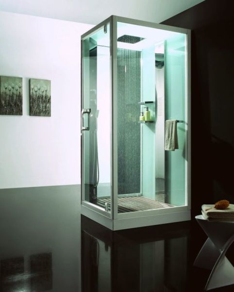 • Внутренняя, электронная панель управления: паровая сауна, bluetooth, радио FM, вентиляция, полноформатная LED подсветка потолка, озонация
