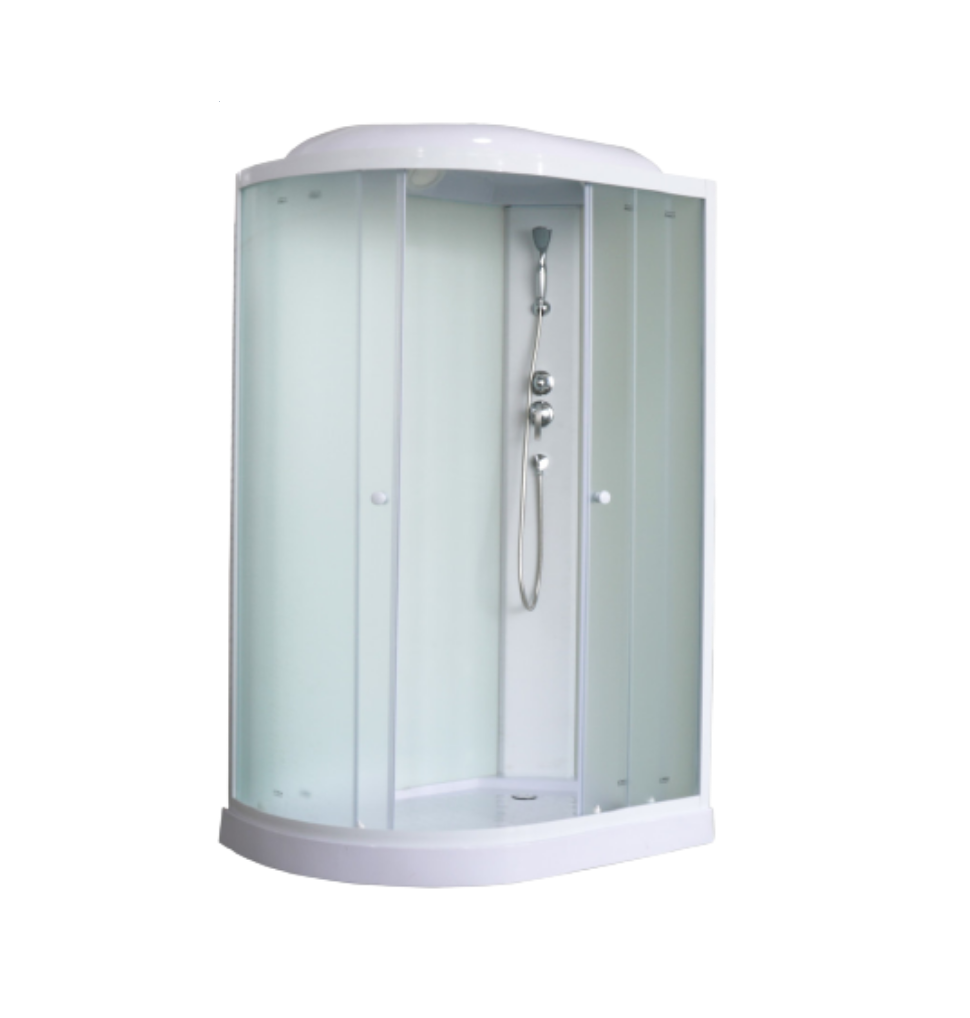 Душевая кабина EB123RРазмер: 120x80x210 смДостоинства:Стекло: 4 мм матовое закаленноеСтенки: закаленное стекло белое 4 ммПрофиль: белый алюминиевыйПоддон: асимметричный низкий 10 смКомплектация: верхний душ ТРОПИК, ручной душ, сифонМагнитные уплотнители под 45°Соединение без болтовоеДополнительные силиконовые уплотнители для задних стенокЦентральная панель позволяет установить гидромассаж в кабинуДушевая кабина отлично подходит для дачи и квартиры.Преимущества модели: экономия пространства, безопасное стекло, плавное бесшумное открывание дверей, повышенная герметичность, легкий доступ к стеклу и профилю для очистки.Внимание! Производитель оставляет за собой право вносить изменения в конструкцию и комплектацию моделей без предварительного уведомления!