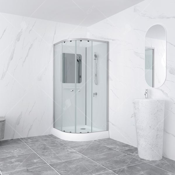 Для изготовления душевых кабин и ограждений используется закаленное ударопрочное стекло, специальное покрытие Easy Clean, которое препятствует образованию налета.