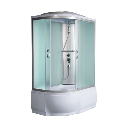~ крыша ~ верхний душ ~ вентиляц. отв-я (2шт) ~ цент. стойка ~ ручной душ 3-х позиц. ~ держатель д/лейки ~ полочка ~ смеситель с переключ. режимов ~ сиденье ~ поддон п/кр выс. со/съемн экр.(Н=46см) ~ сифон