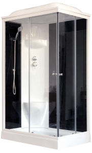Душевая кабина RB 8120HP6-BT стильное решение для ванной комнаты. Черные задние стенки и прозрачные стекла дверей придадут элегантность и гармонично дополнят уникальный дизайн. Определяя место для модели в комнате, обратите внимание, что кабина левосторонняя. Акриловый поддон с антискользящим покрытием имеет оптимальную для входа высоту. Движение дверей по направляющим обеспечивают подшипниковые ролики. Тропический душ с мягким распылением расслабит и снимет усталость. Ручная лейка подойдет для быстрого приема душа. Удобство привнесут встроенное сиденье в центральную панель и полка для средств гигиены.