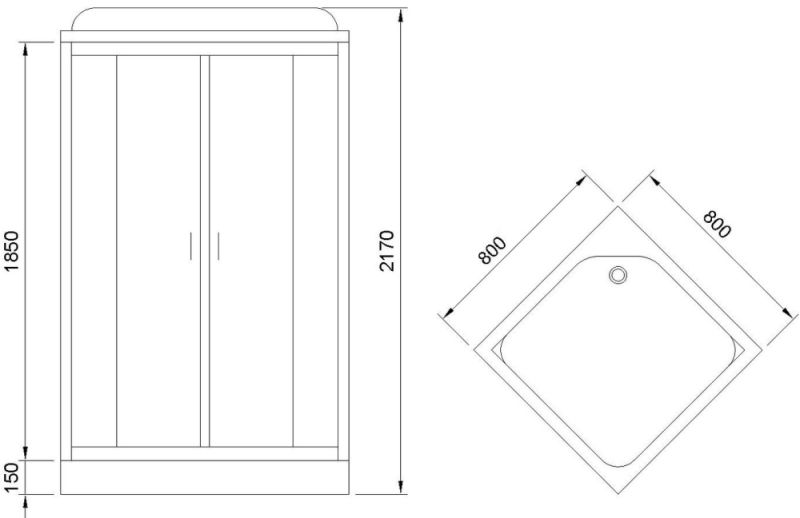 Душевая кабина RB80HP1-T имеет простой дизайн который подойдет для любой ванной комнаты, поможет грамотно организовать пространство, так как продумана до мелочей. Имея ширину 800 мм и глубину 800 мм, это изделие разместится на небольшой площади. Матовые стеклянные двери для душа придадут великолепный вид и практичность, а также помогут сохранить приватную обстановку. Это закрытая душевая кабина, поскольку верхняя часть изделия, которую обычно называют крышей, в комплекте. Дверцы у нее раздвижные, что важно учесть при установке. Обратите внимание на поддон, форма которого чаще всего называется квадратная. Он низкий и сделан из акрила.Комплектация: