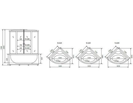 Душевой бокс Timo Lux T-7735C, 135 x 135 см, c крышей, высокий поддон, с гидромассажем, стекла прозрачные, профиль хром