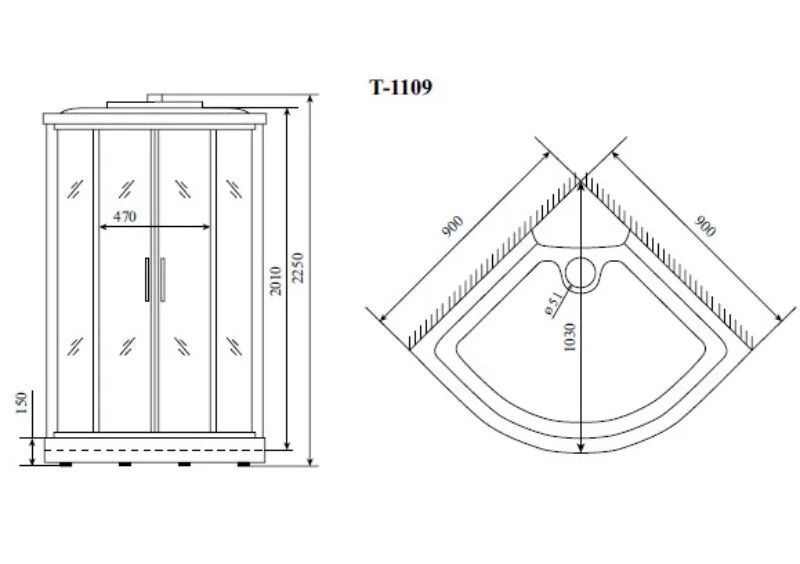 Душевая кабина Timo Standart T-5509, 90 x 90 см, c крышей, средний поддон, стекла прозрачные, профиль хром