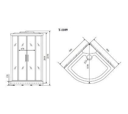 Душевая кабина Timo Standart T-6609BF Black Fabric 90x90см