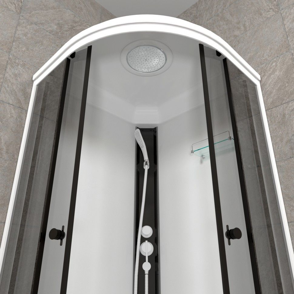 Душевая кабина с крышей ДК Грэй-Блэк 90*90 В, 7 мест+сифон D50 Размер: 90 x 90 x 231.5 с... Подробнее