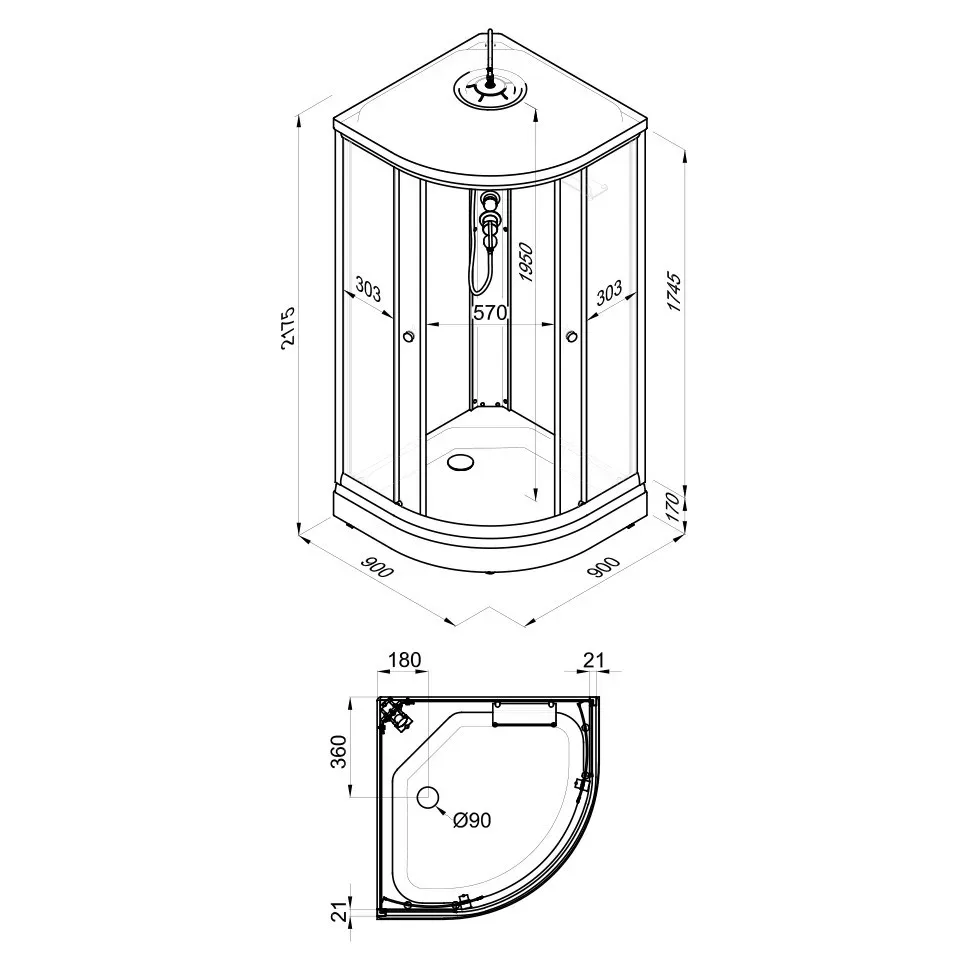 Душевая кабина Triton Грэй Щ0000067302 90x90 см профиль чёрный стекло тонированное