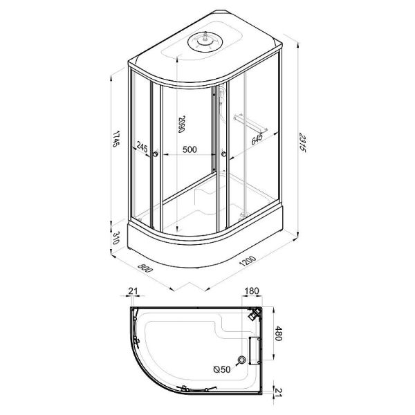 Душевая кабина с крышей, левая/правая ДК Коралл-Лайт 120*80 В, лев/прав, 6 мест+сифон D50 ... Подробнее