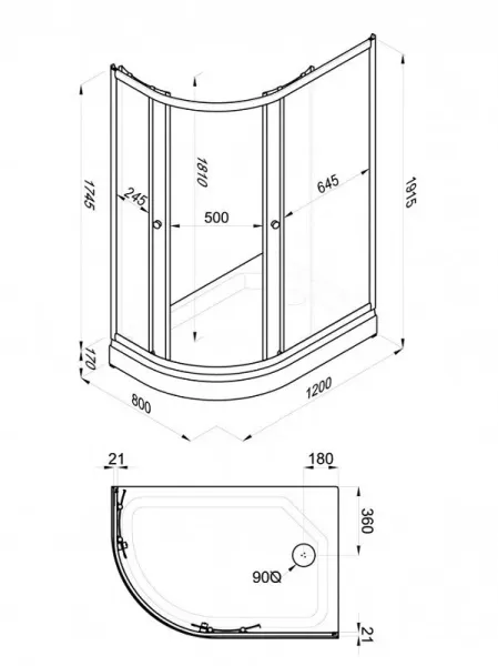 Высота с поддоном: 191.5 см