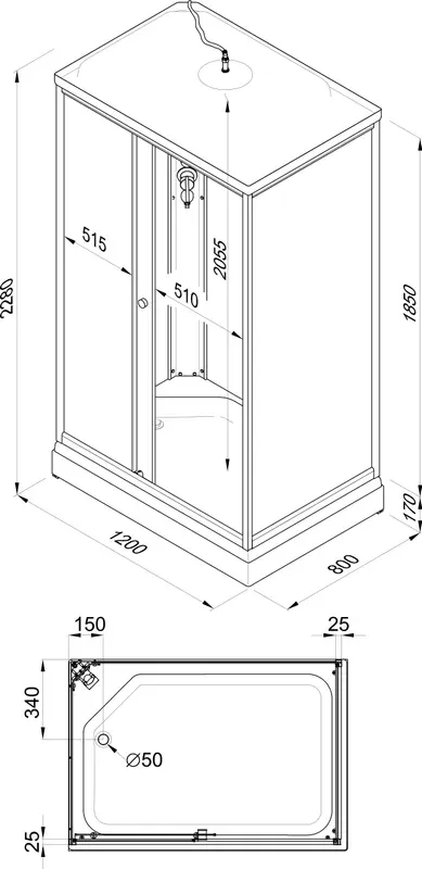 • Верхний душ расположен в крыше кабины