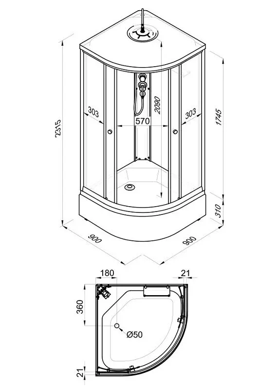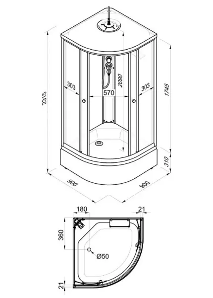 ДК Лайт 90*90 В, 7 мест+сифон D50