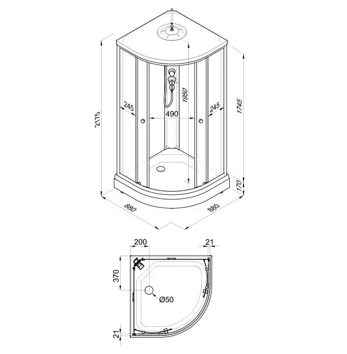 Размер: 88 x 88 x 217.5 см