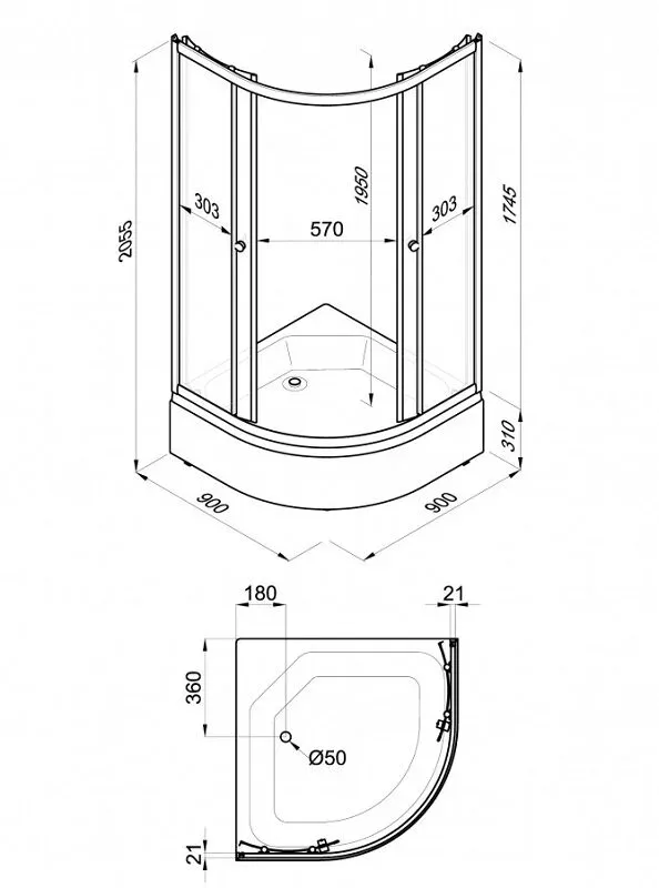 • Высота с поддоном: 205.5 см
