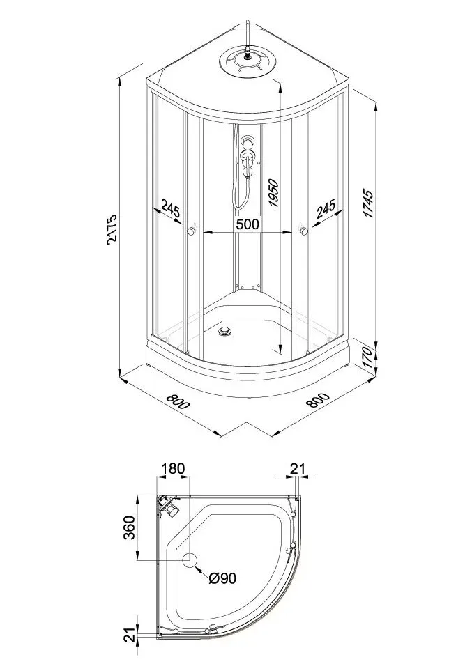 • Размер: 80 x 80 x 217.5 см