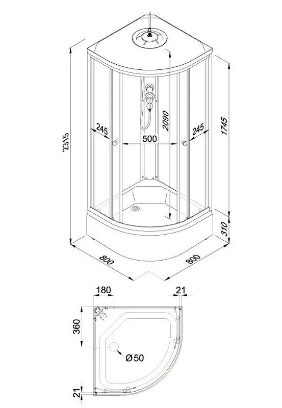 • Размер: 80 x 80 x 231.5 см