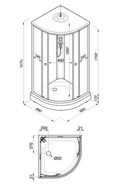 Душевая кабина с крышей ДК Вельвет 88*88 А, 7 мест+сифон D50 Размер: 88 x 88 x 217.5 см ... Подробнее