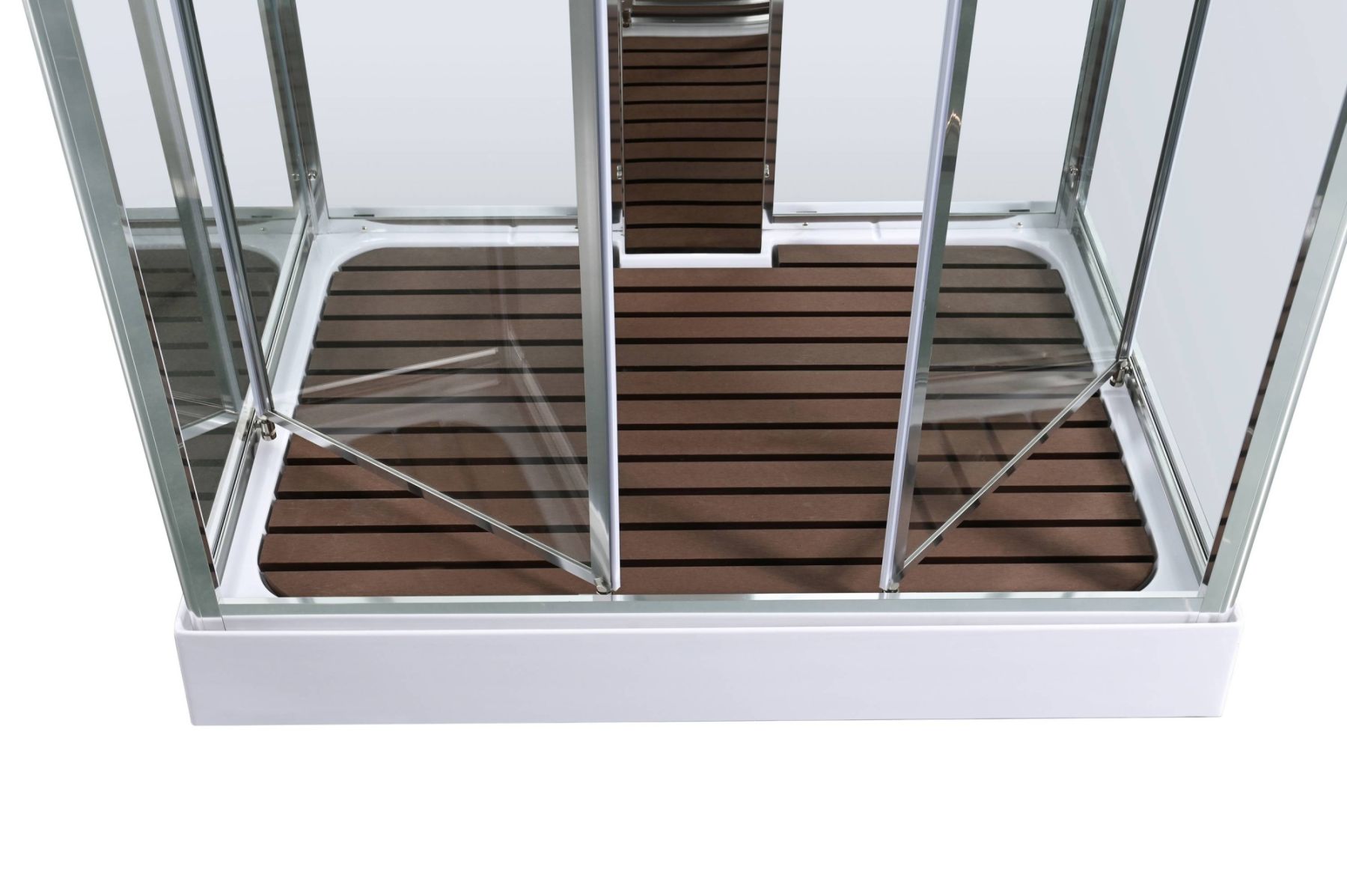 Стильная душевая кабина AvaCan сочетает в себе высокую функциональность, практичность и надежность. При изготовлении применяется безопасное закаленное стекло, надежно фиксируемое алюминиевым профилем.Профиль сделан из алюминия повышенной прочности. Сборка без силикона (увеличивает срок службы, защищает от протечек), внутренняя сборка (облегчает установку и ревизию; позволяет установить в ограниченном пространстве и обойтись без демонтажа других сантехнических приборов), смеситель резьбовой (без хомутов).Двойные металлические ролики дверей (распределение нагрузки на два ролика, увеличивают срок службы). Душевая штанга(позволяет регулировать по высоте ручную лейку), ручная арома-лейка с витамином С (картридж в комплекте,есть возможность замены или удаления картриджа), полочки(из стекла, с ограничителем), сифон с гидрозатвором, сенсорный пульт управления с функциями: блютуз, LED подсветка, радио, вытяжка, гидромассаж спины, тропический (верхний) душ.