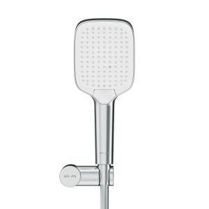 Невероятно легкая очистка душевых форсунок благодаря функции Rub&Clean. Набор дополнен регулируемым держателем для ручного душа. Шарнирное соединение защищает душевой шланг от перекручивания.
