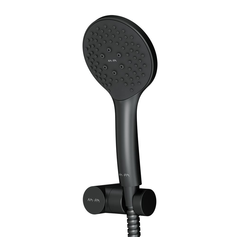 Душевая лейка Am.Pm Gem F0119022Gem F0119022, душевой набор: ручной душ 110мм, держатель ручного душа, душевой шланг, чёрный, шт., функция Rub&Clean для легкой очистки душевых форсунок. Один режим ручного душа.