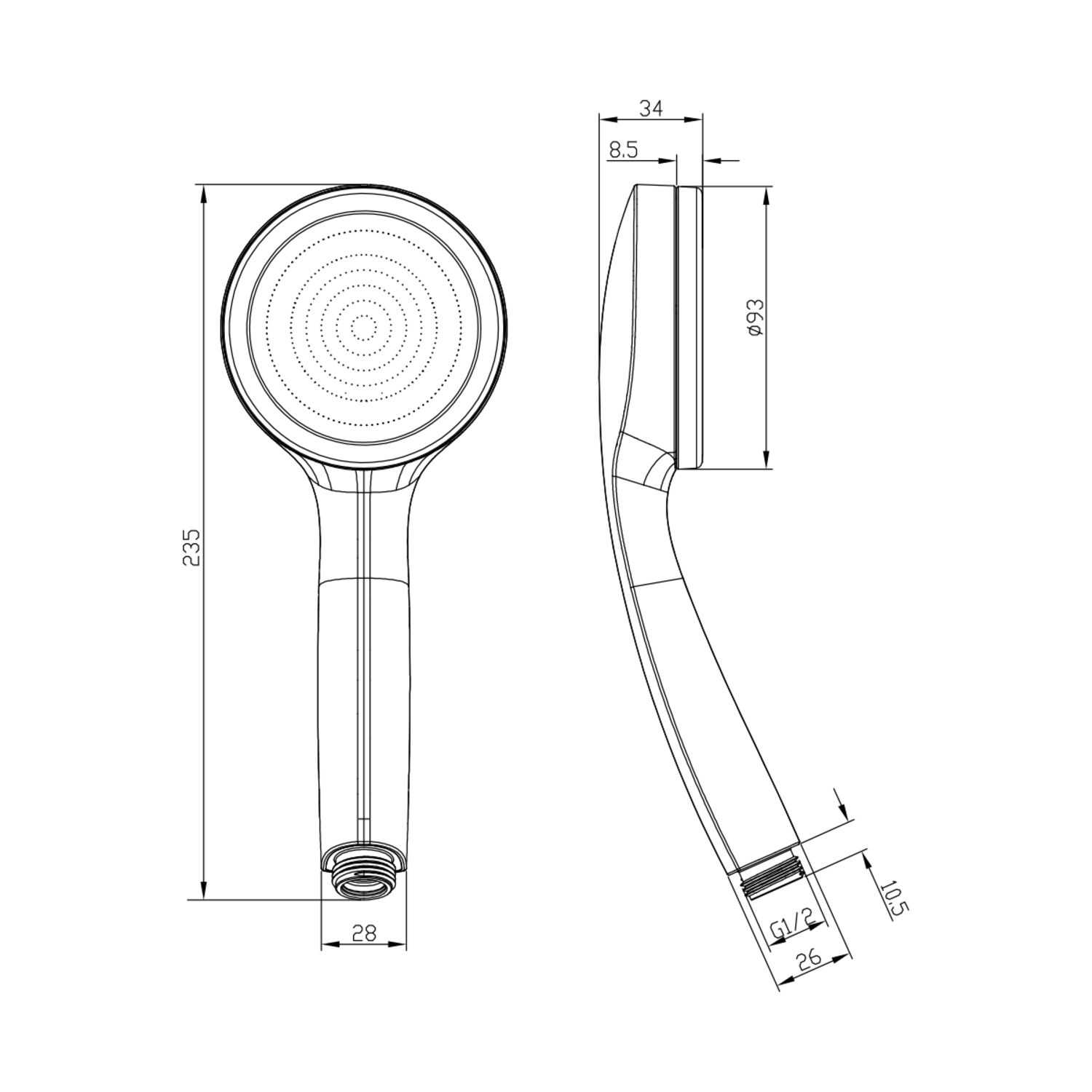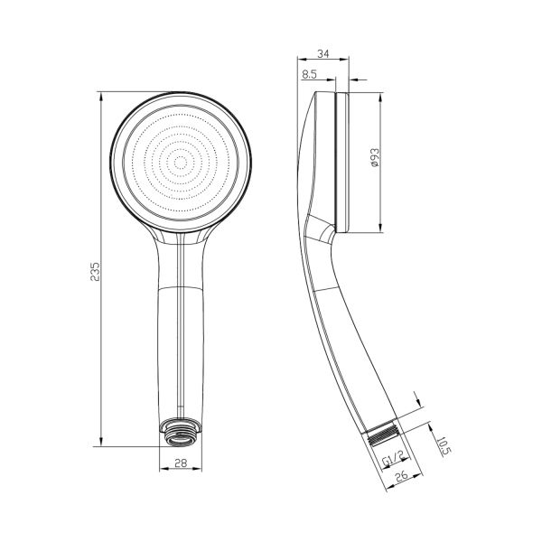 • Размер ручного душа, см: