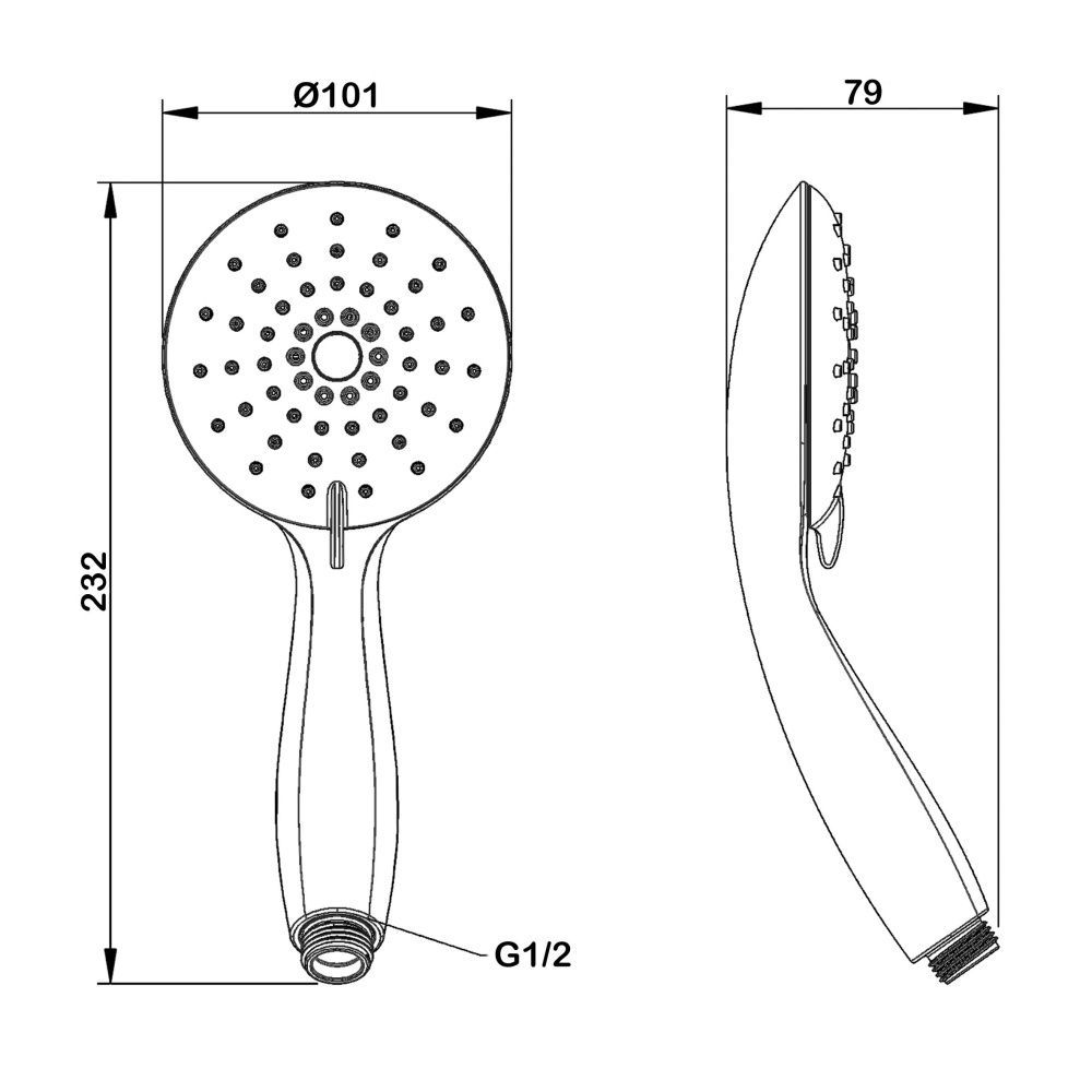 Ручной душ 3 режима, диаметр - 101 мм. Гипоаллергенный ABСпластик.Форсунки из силикона с функцией самоочистки.