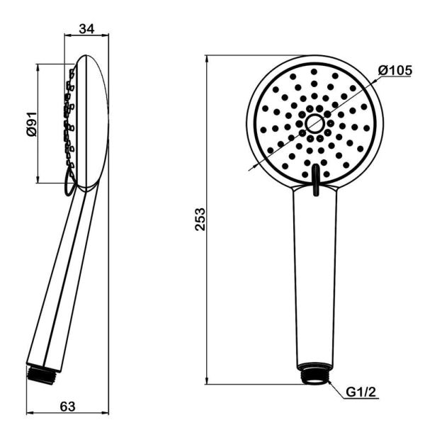 Ручной душ 3 режима, Диаметр - 105 мм. Гипоаллергенный ABСпластик.Форсунки из силикона с функцией самоочистки.