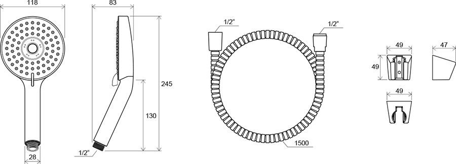 • держатель для душа: пластиковый