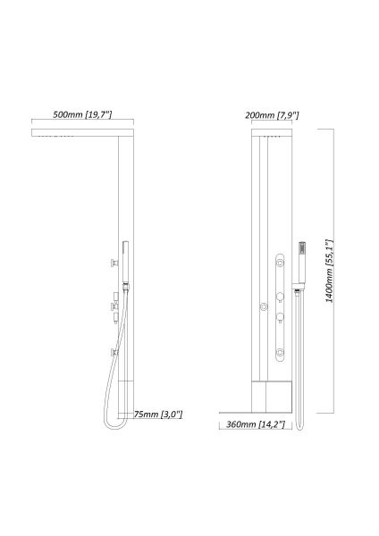 Душевая панель Black & White Gravity GR027 1400 х 200 мм
