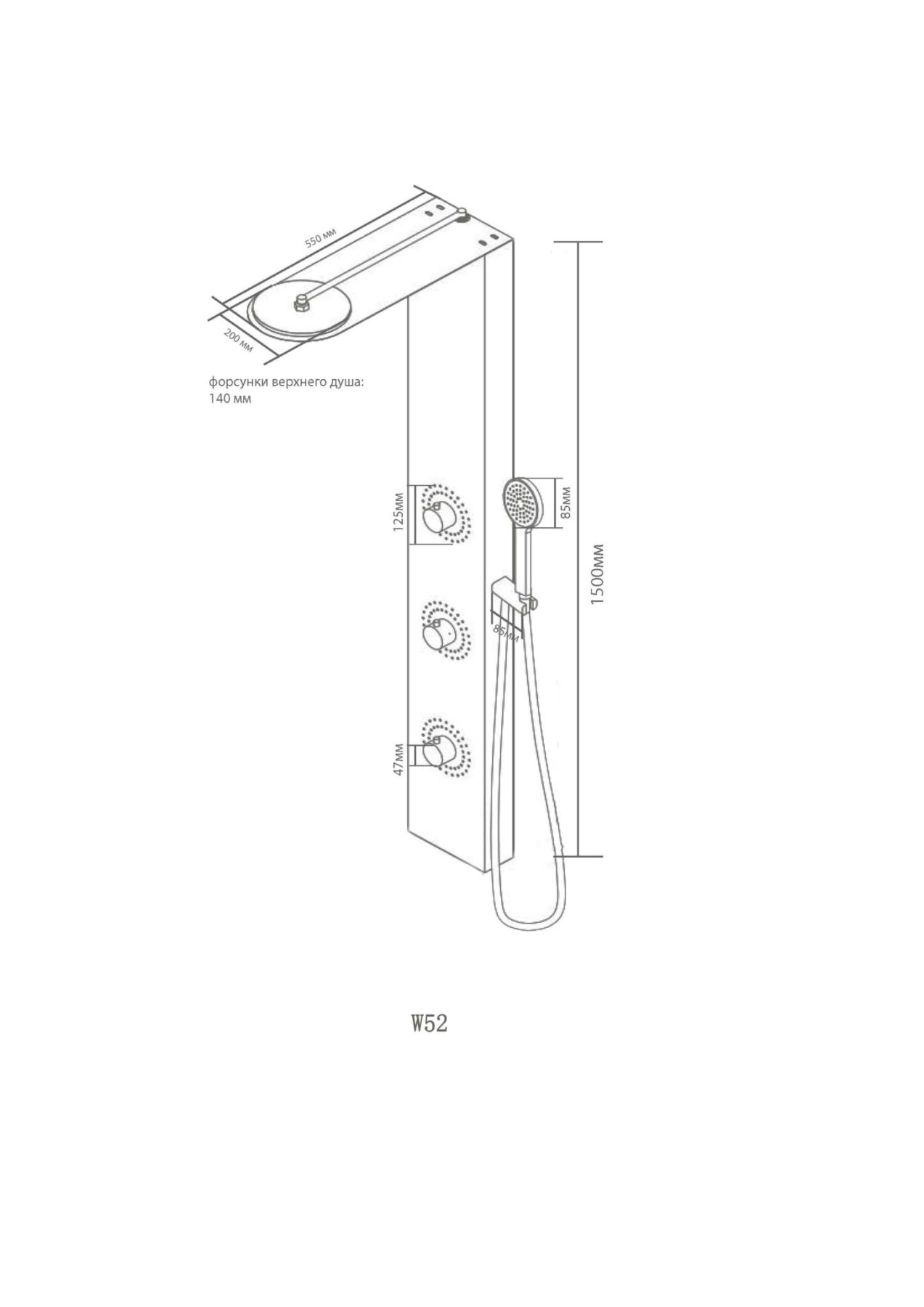 • Размер верхнего душа, см: