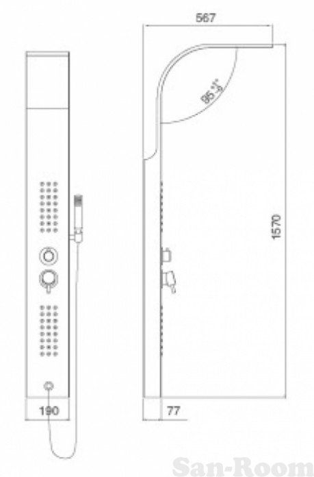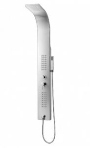 душевая панель (3 режима), Брашированная. Нерж. Сталь 304, ручной и верхний душ - ABS с гальванопокрытием и силиконовыми форсунками, гладкий шланг с гальванопокрытием, керамические картриджи, латунные хромированные ручки переключения