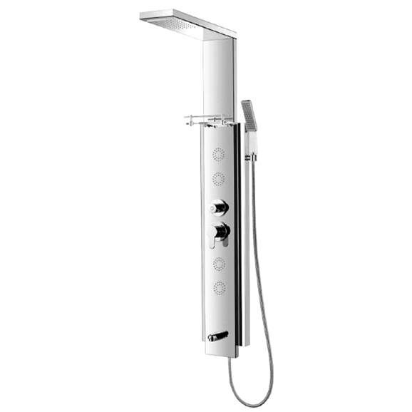 4-х функциональная гидромассажная панель, нержавеющая сталь, зеркальная полировка, тропический душ с силиконовыми форсунками, гидромассажные форсунки силиконовые, налив в ванну, ручной душ