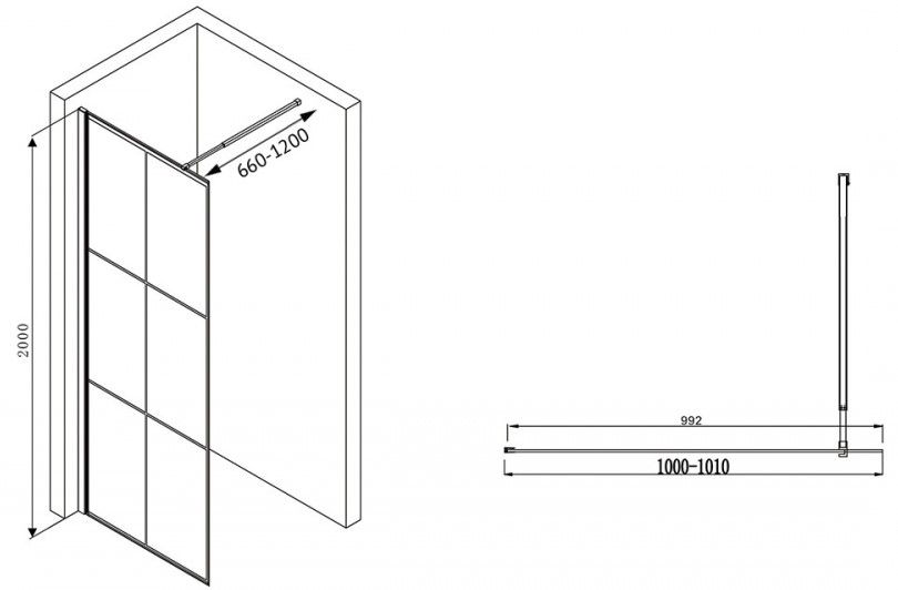 Душевая перегородка ABBER Immer Offen 100см чёрный AG62100B8