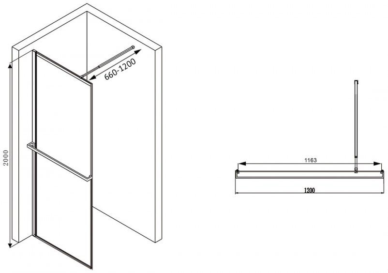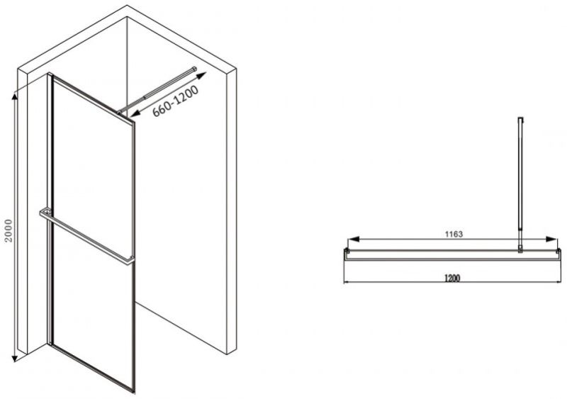 Душевая перегородка ABBER Immer Offen 120см чёрный AG60120B8